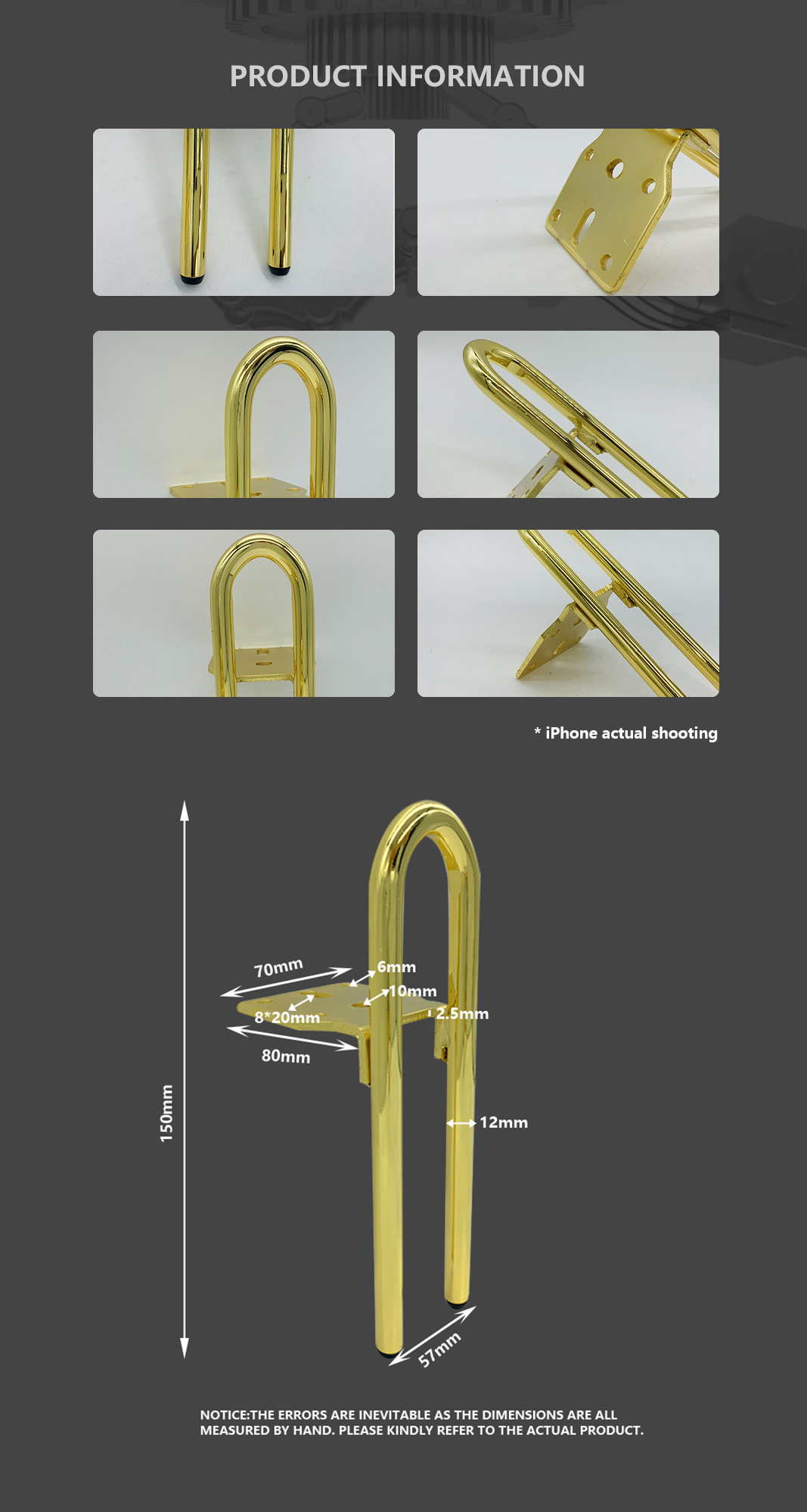 Wholesale Metal Iron Door Arch Shape Couch Legs Chair Foot Cabinet Feet Sofa Leg for Furniture Light Luxury Heavy Industry