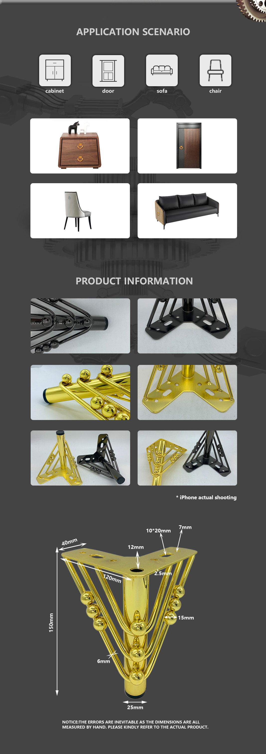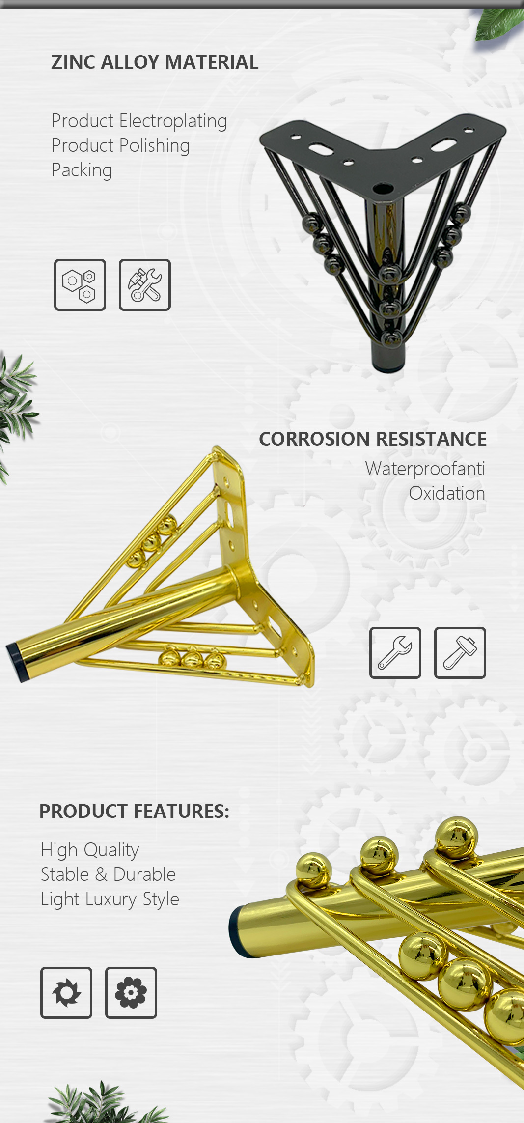 Support Customization Y Shape Furniture Table Cabinet Foot Sofa Metal Gold Leg Slant Feet Living Room High Quality Chair Legs