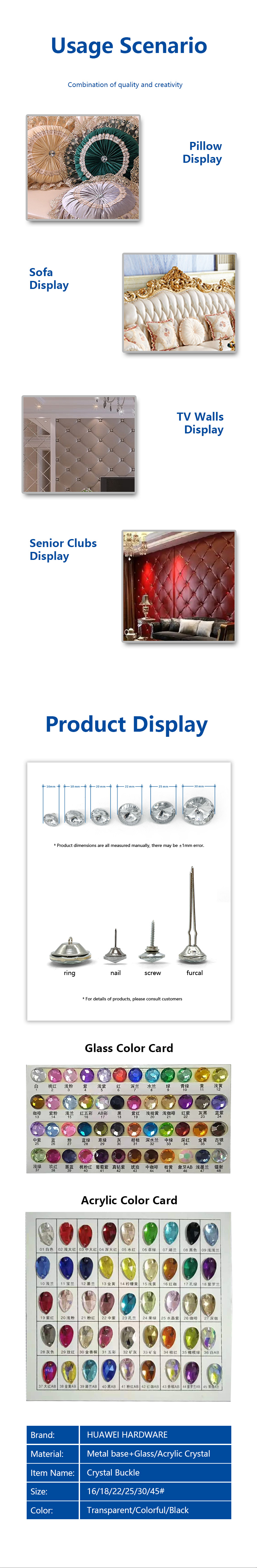 Chamfer with Needle Sofa Accessories Clear Custom Color Crystal Upholstery Button Rhinestone Button for Furniture