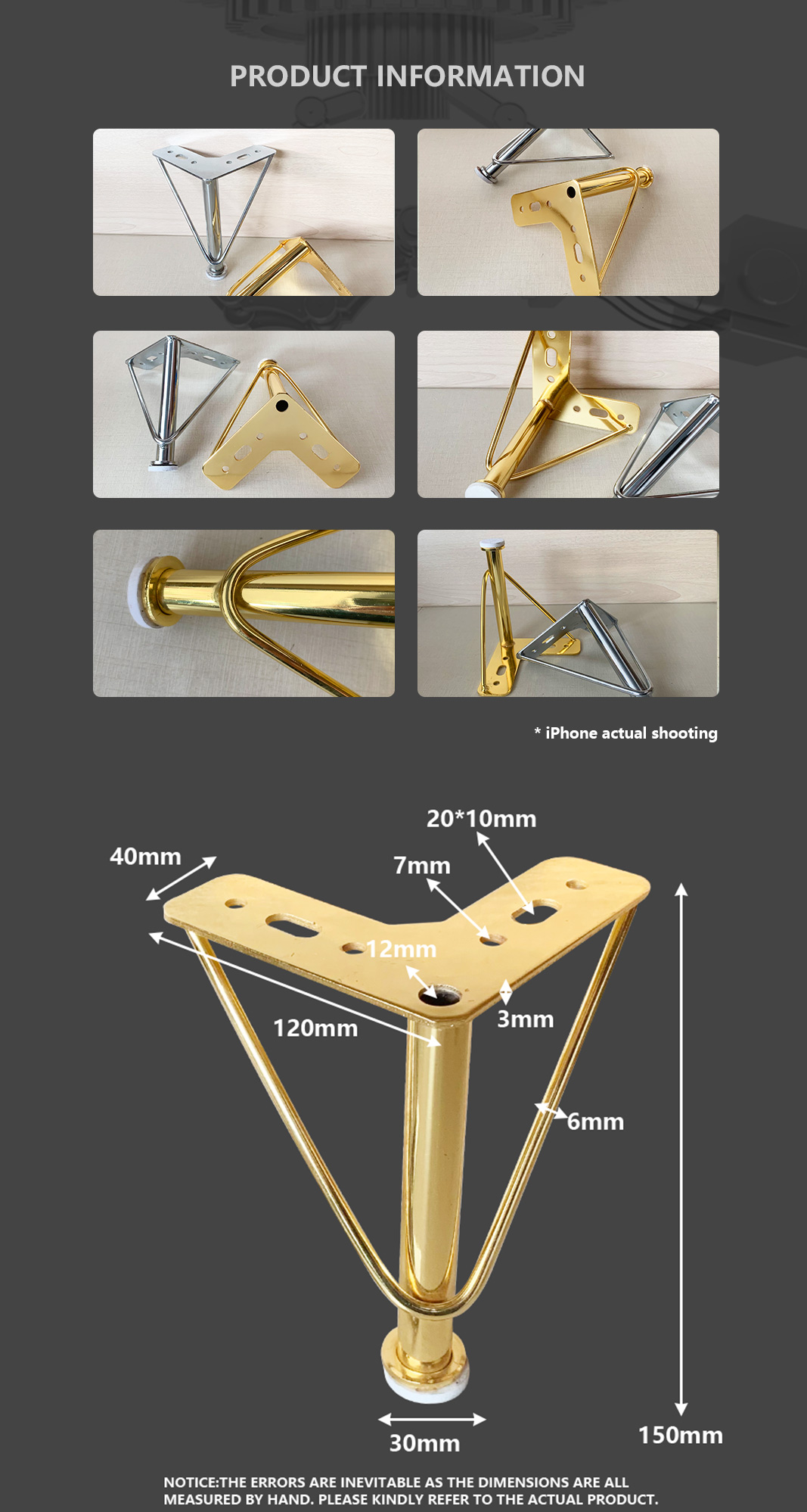 HUAWEI 15CM Sofa Legs Manufacturing Furniture Accessories Y Shape Iron Sofa Feet Golden Couch Leg