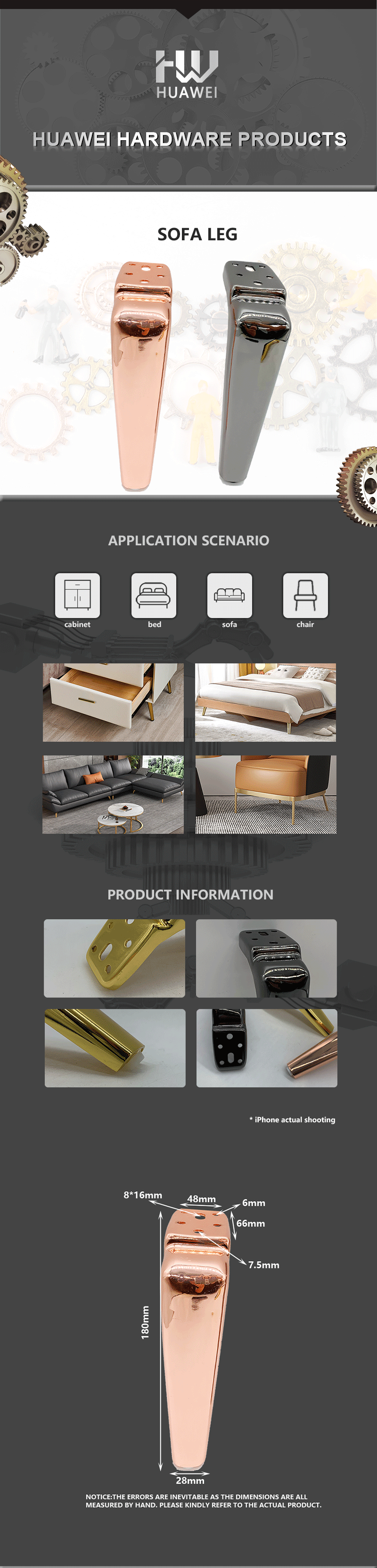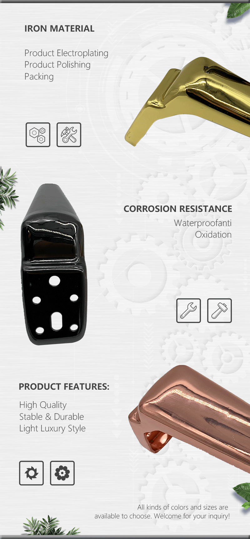 Huawei Furniture Hardware Accessories Metal Plating Polishing Sofa Legs Bed Foot Chair Feet Coffee Table Leg for Bedroom Living room