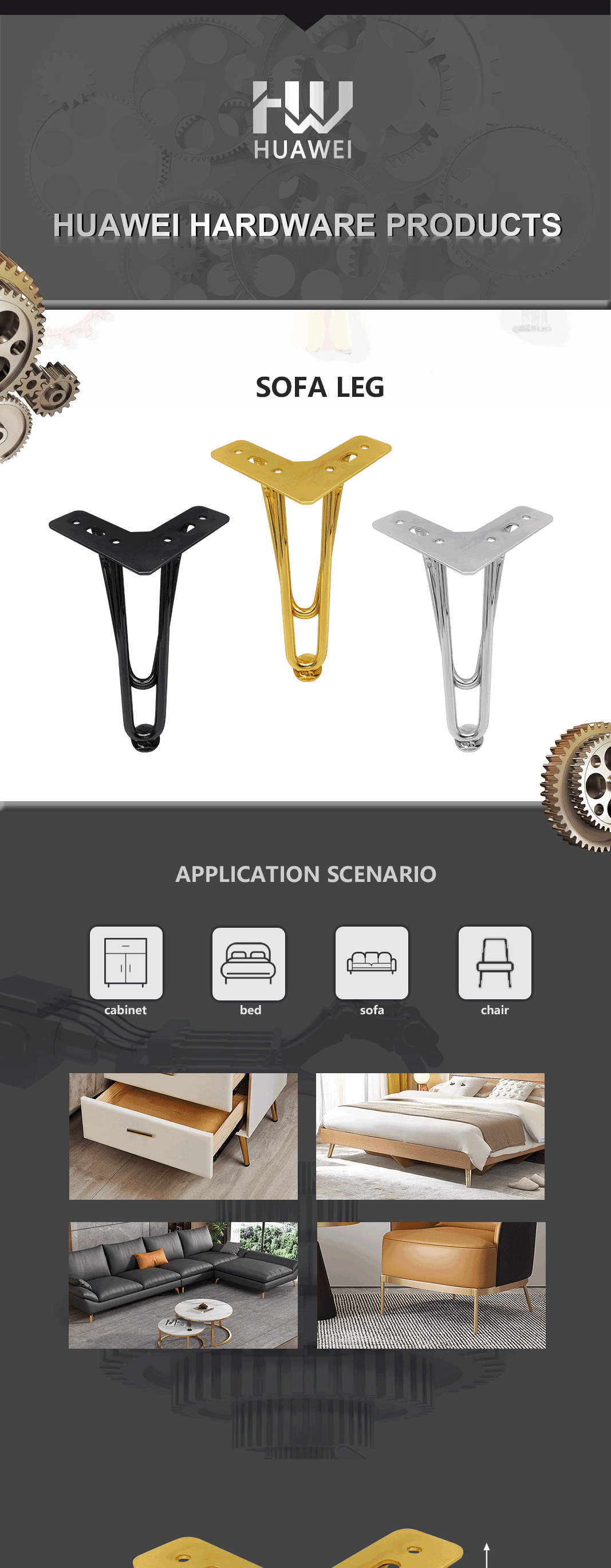 HUAWEI Hardware Furniture Accessories Sofa Leg Manufacturer Supply Fancy Y Shape Steel Cabinet Bed Legs For Sofa