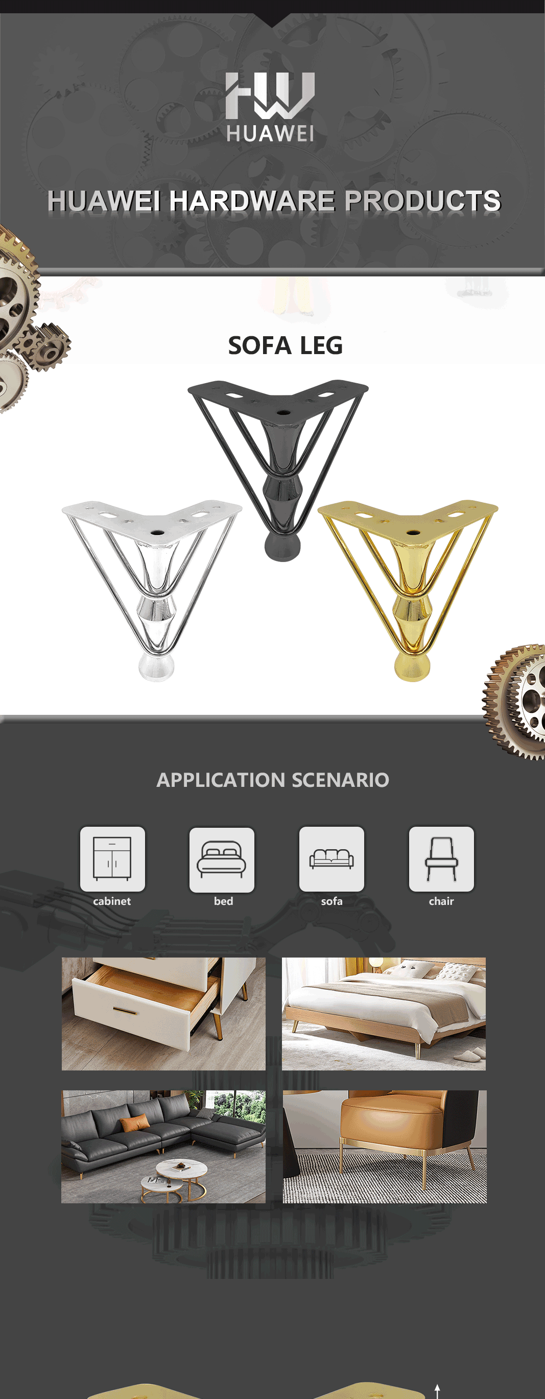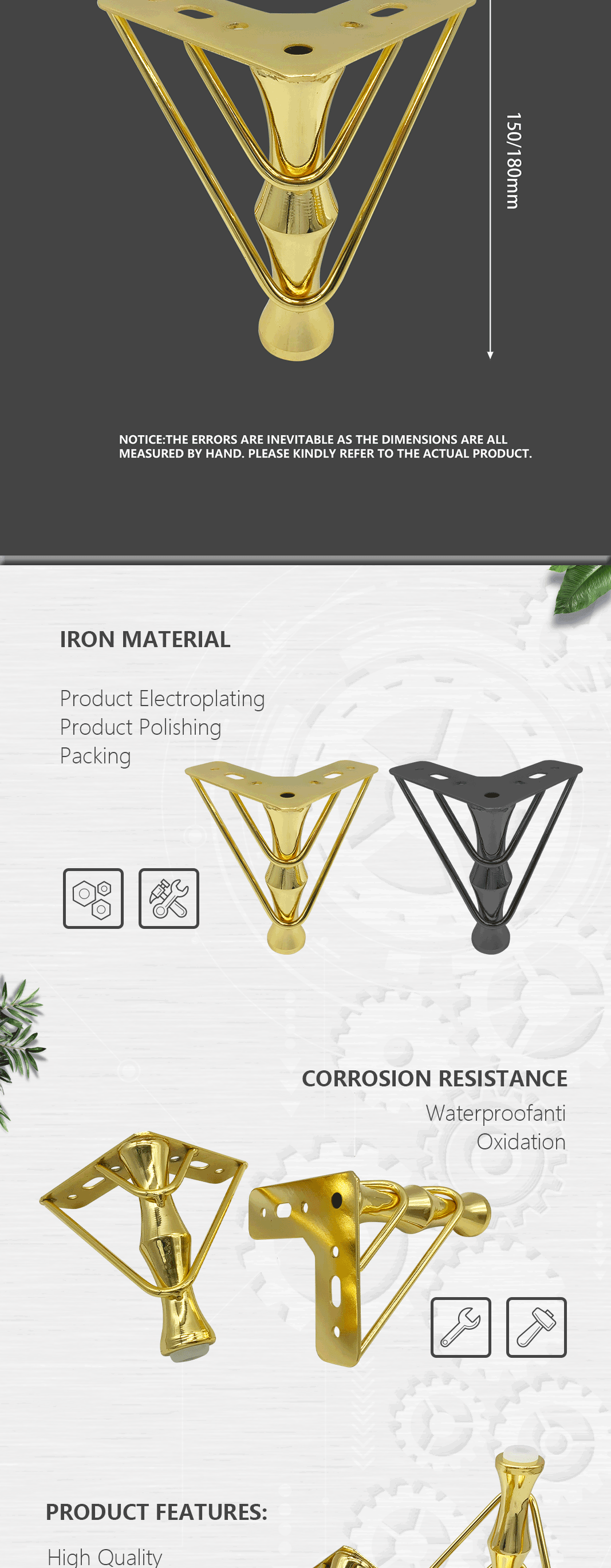 Huawei high-quality gold furniture iron legs sofa hardware feet coffee table feet bed legs