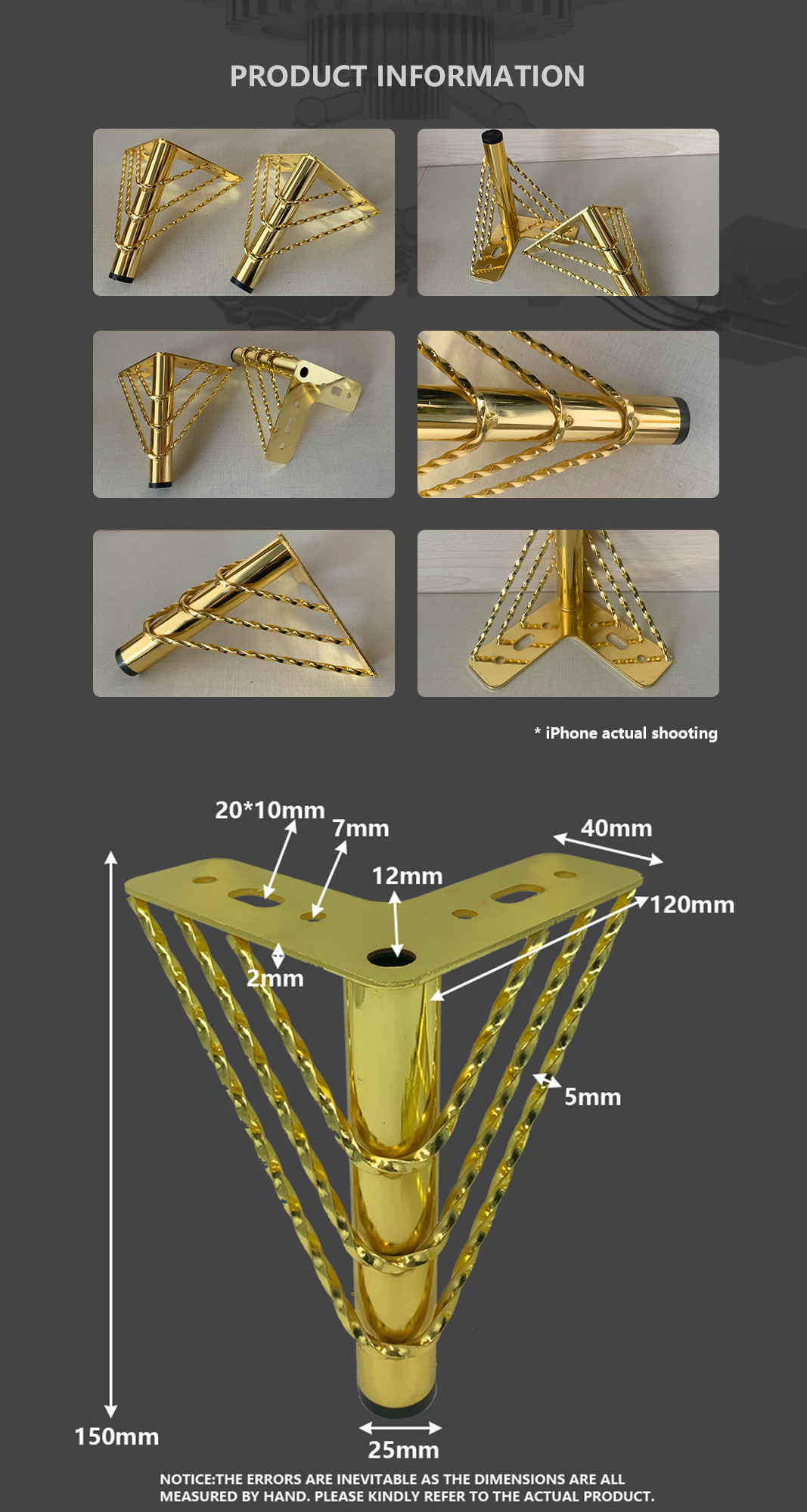 15mm Furniture Accessories Plating Polishing Sofa Metal Cabinet Legs Bed Foot Chair Feet Coffee Table Leg Couch