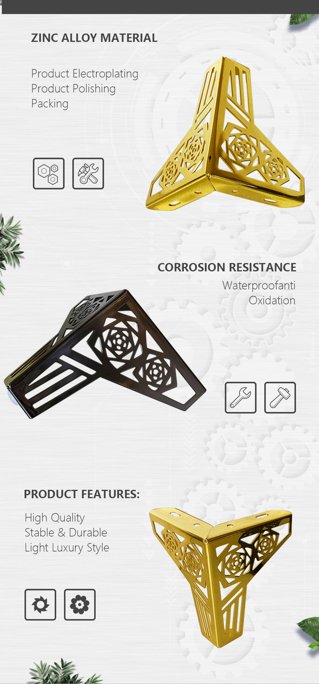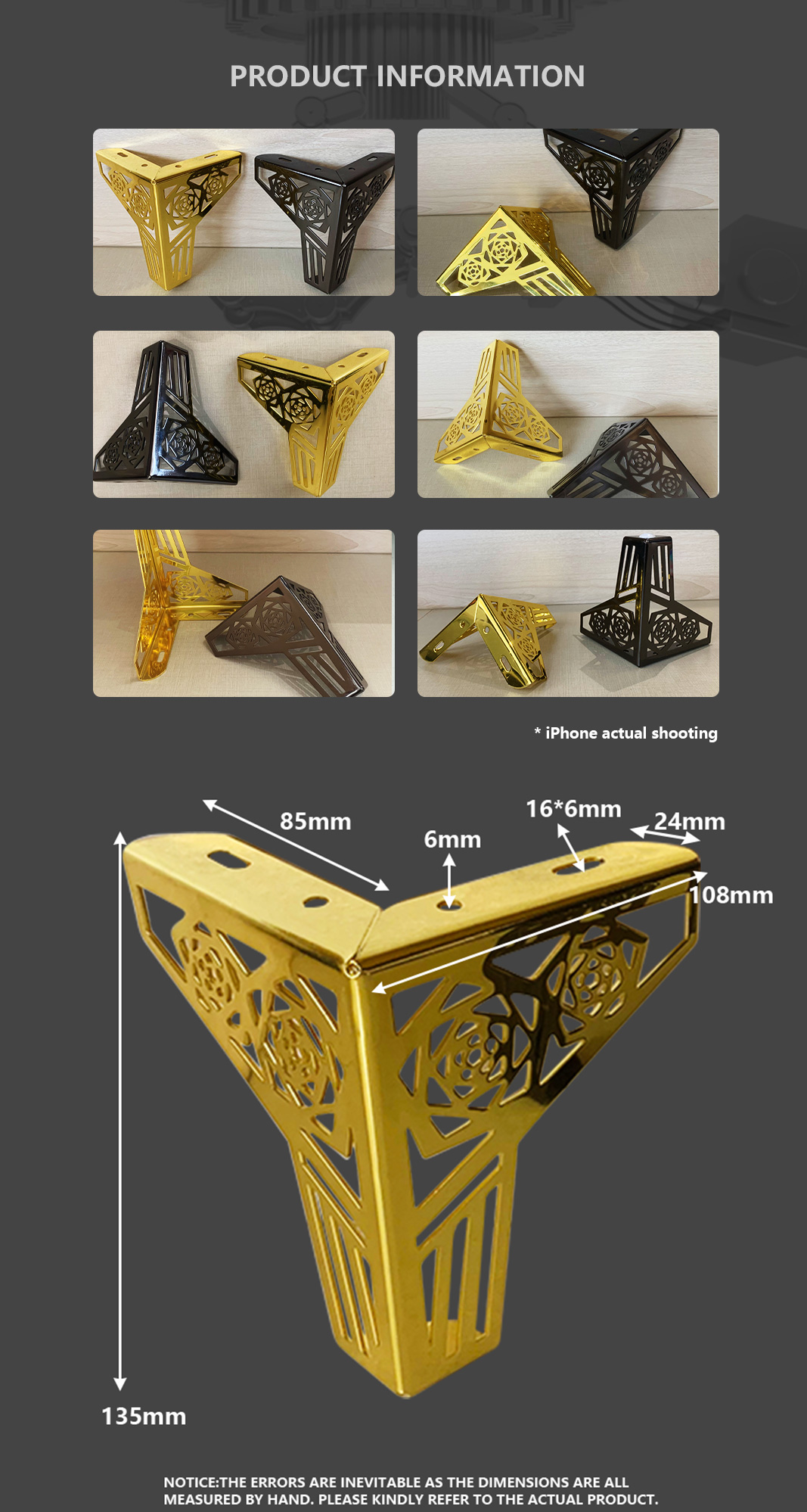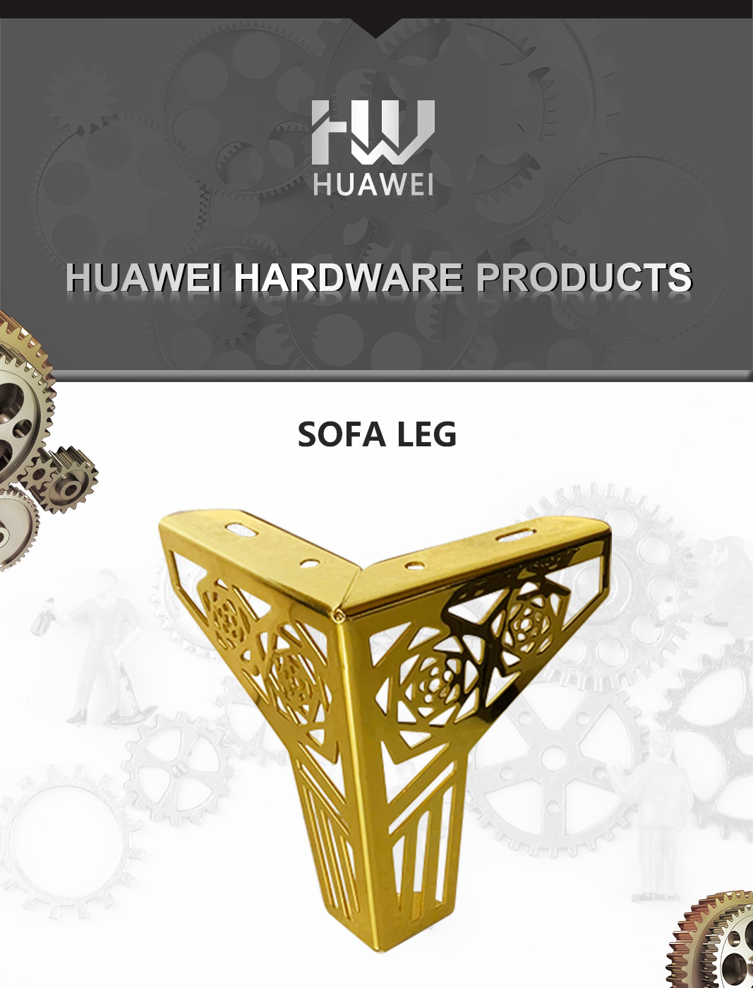 HUAWEI Plated Polished Y Shape Furniture Hardware Metal Sofa Foot Cabinet Base Foot Bed Legs Couch Leg with Rose Flower Pattern