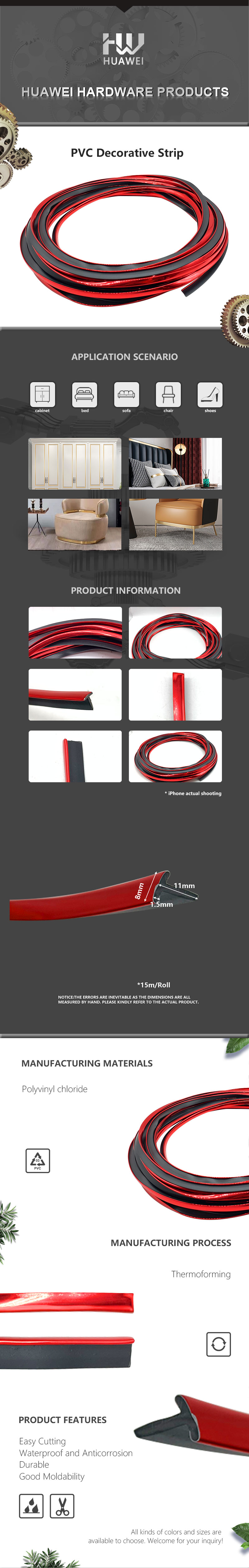 Huawei Furniture PVC Sofa Plastic Trim Strips Chair Decorative Strip Edge Banding T Shape Decoration Adhesive Tape for Bedroom/Car