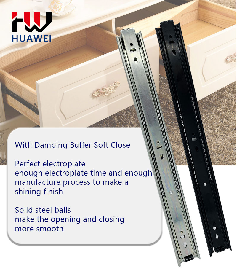 Huawei hardware Wholesale Full American Type 16 Inch Rail Heavy Duty Sliding Adjustable Undermount Soft Close Drawer Slides